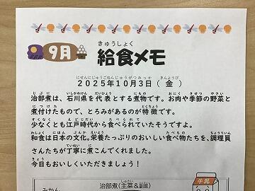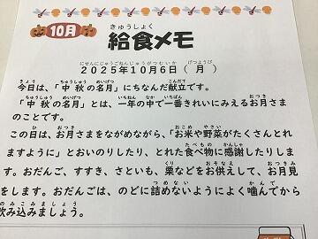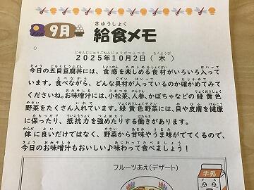 (給食メモの日付が違っていますね正しくは「10月1日(水)」です。)