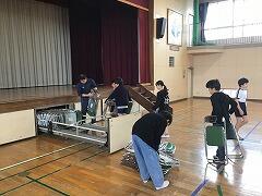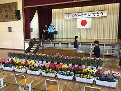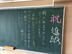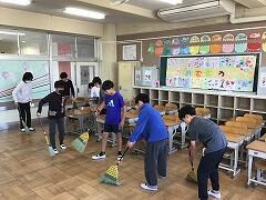 2~4年生が下校した後,5・6年生は入学式の前日準備作業を行いました。花を運んだり,イスを並べたり,教室や昇降口,トイレをきれいに掃除したりと,新入生と保護者の皆さんが気持ちよく入学式を迎えられるように,一生懸命働く姿は正に「高学年」,とても素晴らしかったです笑う
