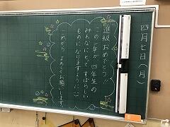 令和7年度,富西っ子たちの初登校の天気は晴れ晴れでした笑う桜の花も満開で見頃を迎えていますキラキラ各教室では,担任の先生方の温かなお祝いメッセージがスタンバイしています鉛筆