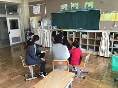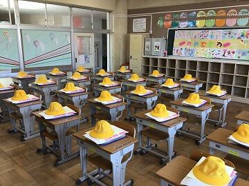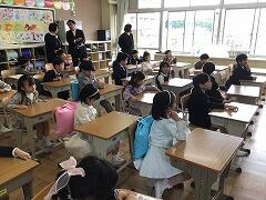 1年生は教室で学校生活のイロハを学びます。手紙の配り方も教わり,丁寧に後ろの友達に回しましたハート3時間目終了後,コースごとに集団で下校となりました。