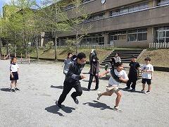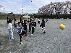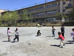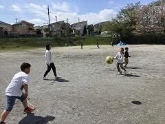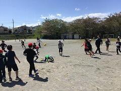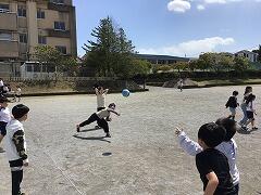 休み時間はドッジボールやサッカー,鬼ごっこなどをして校庭で元気に遊びましたグループ