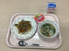 ほほえみ学級には特別支援教育巡回アドバイザーの加藤先生が来校されました。1年生は給食デビュー2日目,今日はキムタクチャーハン・かきたまコーンスープ・フルーツポンチでしたイベント