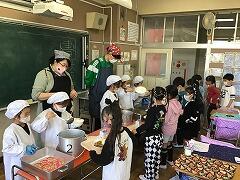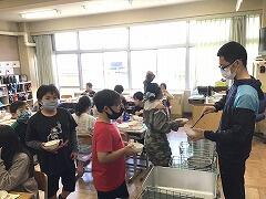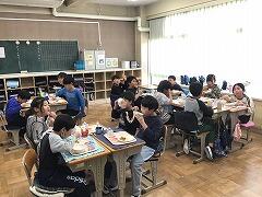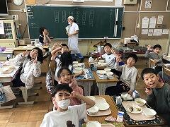村西校長先生にも見守っていただきながら,みんなでおいしくいただきました給食・食事早々に食べ終えて,おかわりする子もたくさんいました。明日の「キムタクチャーハン」も楽しみですねキラキラ