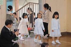 教室に戻ってからは,初めての学級活動です笑う担任の渡邉先生の読み聞かせから始まり,お話の後は体育館に戻って集合写真撮影となりました。