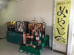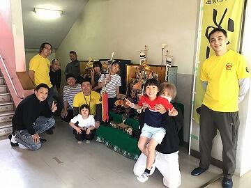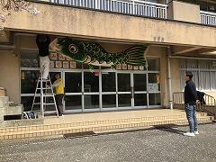 昇降口2か所にも,大きな鯉のぼりが設置されましたピースまた,昇降口を入った所にもそれぞれ五月人形が飾られました。鯉のぼりも五月人形も,地域の方からご寄付をいただいたものです。