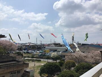 おやじの会の皆さんが,今年も鯉のぼりと五月人形の飾りつけをしてくださいましたキラキラ校舎間を結ぶロープに,真鯉や緋鯉,そして子どもの鯉が風に揺られる光景がとてもステキですね興奮・ヤッター!星