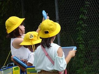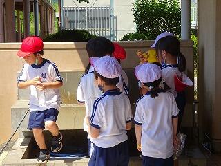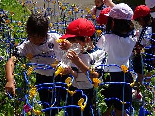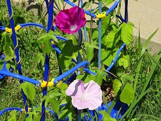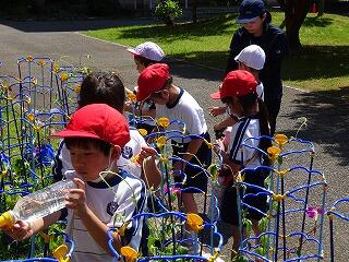 1年生は生活科でアサガオを育てています。日当たりもよく,ぐんぐん大きく育っています。
