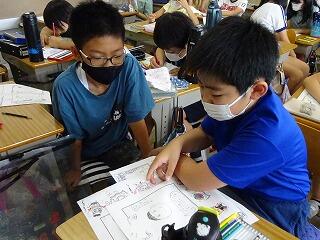 楽しいイラストを使って,イメージを可視化し,ストーリーから自分の才能や内なる思いに気づくことで,自分の夢実現のための行動をデザインしました(写真は5年生と3年生)。4年生は7月14日(木),6年生は9月6日(火)に行います。