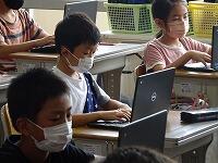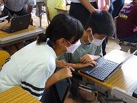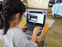 「キーボー島アドベンチャー」は各級のキャラクターを試合形式で倒して勝ち進み,児童がゲーム感覚で楽しみながらキーボード入力を学べるものです。上達しています。「習うより,慣れろ」ですね。(写真は3年生)