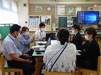 7月14日(木)柏市教育委員会教育研究所松山美香指導主事,指導課伊藤裕太指導主事を講師にお招きして,第1回校内授業研究会(6年算数「比 割合の表し方を調べよう」)を行いました。子供たちは「Chromebook」「学習者用デジタル教科書」を使って課題解決に取り組みました。研究協議では,全職員で授業の振り返りを行いました。講師の先生方からは「算数の指導方法」や「個別最適な学びと協働的な学び」についてのお話がありました。御指導いただきまして誠にありがとうございました。