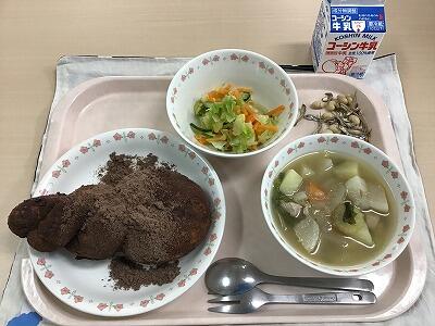 ココア揚げパン・ポトフ・コールスローサラダ・大豆小魚・牛乳