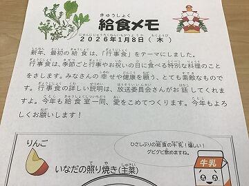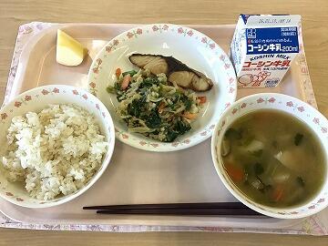 いなだのてりやき・切干大根のごまあえ・七草の白玉雑煮・ごはん・りんご・牛乳