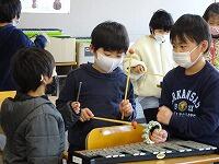 「ほし空の様子をあらわす音がくをつくろう」グループで楽器のならしかた・つよさ・はやさを考えてつくります。完成が楽しみですね♬(写真は1年生)
