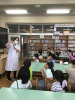 生活科の時間に1・2年生の子どもたちが,給食に使うそら豆のさやむきをしました。栄養士の小林先生から「そらまめくんのベッド」の読み聞かせと,むき方の説明を聞いてから,丁寧に豆を取り出していました。