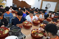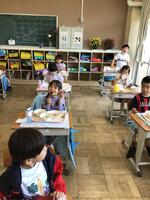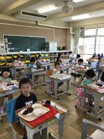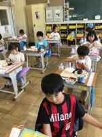 給食の時間には,いつも低学年の支援をしている6年生の子どもたちが「1年生がむいてくれたそら豆だ。」と嬉しそうに話しながら食事をしていました。