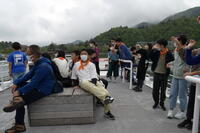 竜頭の滝を抜けると,中禅寺湖フェリーに乗船しました。展望デッキで心地の良い風を感じながら,「上野島」や「男体山」等の風景を楽しみました。中禅寺湖の景色の美しさに触れ,感嘆の声を上げていました。