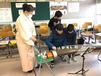 箏は和楽器のひとつで,弦を弾いて音を出す楽器です。同じ弦楽器の仲間に,ギターやバイオリン,チェロ等がありますが,その中でも琴は独特の音色を出す楽器ですね。今日は,4・6年生を対象に講師の先生をお迎えして,琴を弾く体験をしました。初めての体験でしたが,きれいな音色を響かせて「さくら さくら」をつま弾くことができました。
