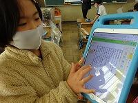 1年生は国語の時間に,ペアをつくり,iPadを使って,お互いの作品を読み,写真を見せて説明し,感想を伝え合う学習を行いました。「~がおもしろいね」「~がじょうずだね」等々。作品の良いところを伝え合うことができました。