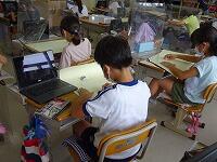記録・保存した写真を見ながら描画します。(写真は4年生図工)
