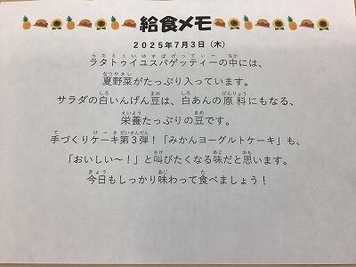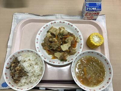 大豆ミートソースのスパゲティも,青大豆入りグリーンサラダも,富西っ子たちに大好評手作りのアップルパイは途中で”おまけ”も各学級に配られて,おかわりジャンケンも盛り上がりました