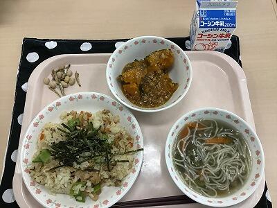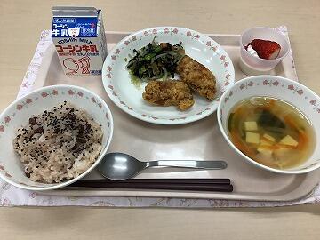 6年生の卒業をお祝いして,お赤飯と紅白ミルク寒天,おめでたい献立になりました