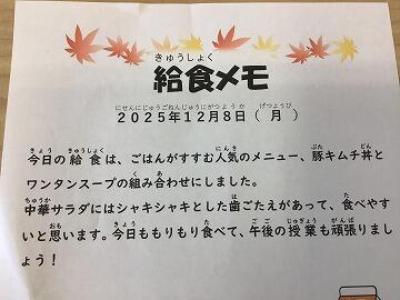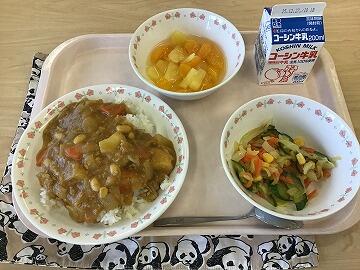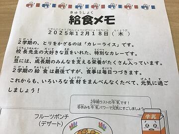 2学期最後の給食は,富西っ子たちも大・だい・だ~い好きなカレーライス,しかも大豆入りでした