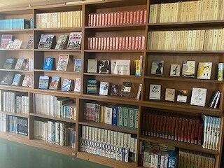 みんなが毎日通る廊下の棚を整理し,本を展示するスペースを増やしました。部活動の本や,3年生に向けた入試関連の本が飾られています。