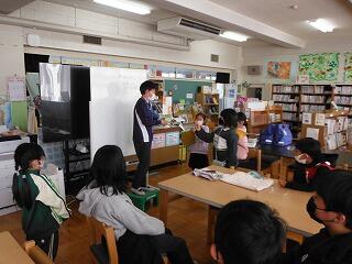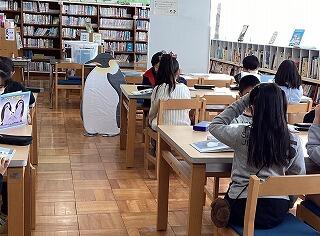 本は『ペンギンのヒナ』です。同じ本を読んで、お互いの感想などを発表し合います。一人一冊の本を手にする特別感がある楽しい時間となりました。「またやりたい」との声がたくさん聞かれました。一人で行う読書とはまた違った読書の楽しさを発見できたのではないでしょうか。