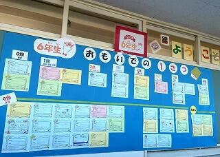 書いてもらった用紙は廊下に掲示しました。それぞれに請求記号を添えたので、気になった本を下級生が本棚で探している姿が見られました。もうすぐ卒業する6年生に、これからも素敵な本との出合いがたくさんあることを願っています。