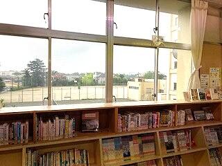 学校図書館は二階にあり、窓から校庭がよく見えます。
