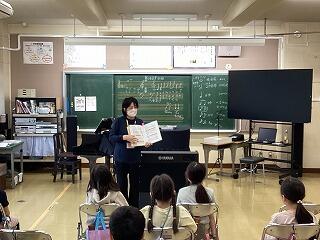花サポ(花野井小ボランティア)による読み聞かせ活動。令和5年度は、約200冊ほどの本の扉を開いてくださいました。