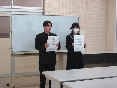 全校集会では、夏休み以降の諸活動における活動報告(表彰)や、生徒会本部役員さんからいじめ防止サミットの報告などが行われました。