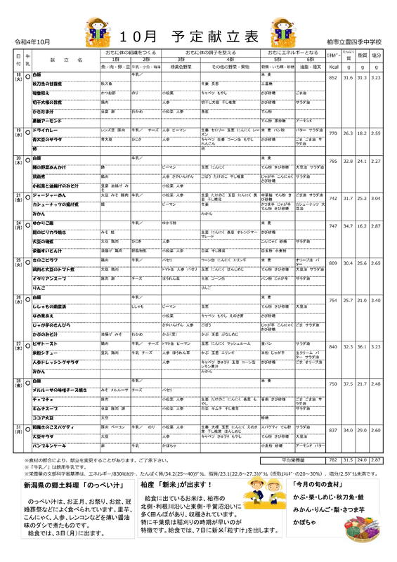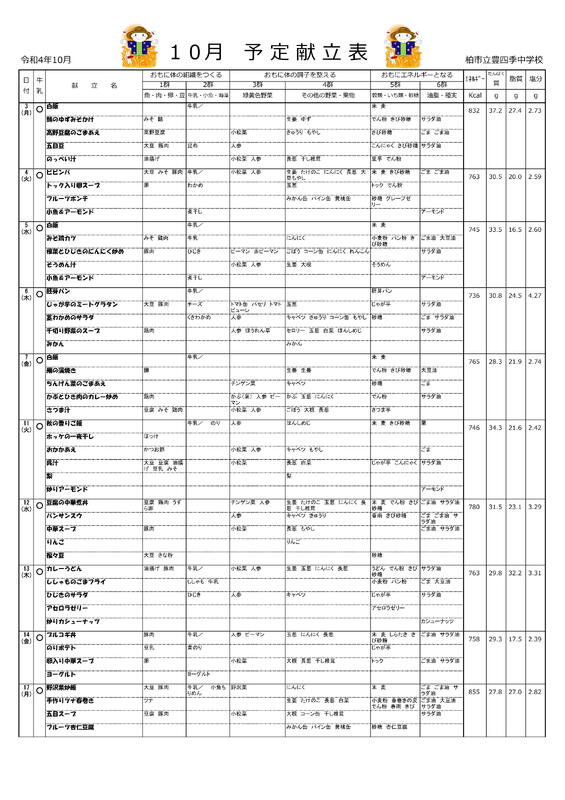献立表10月