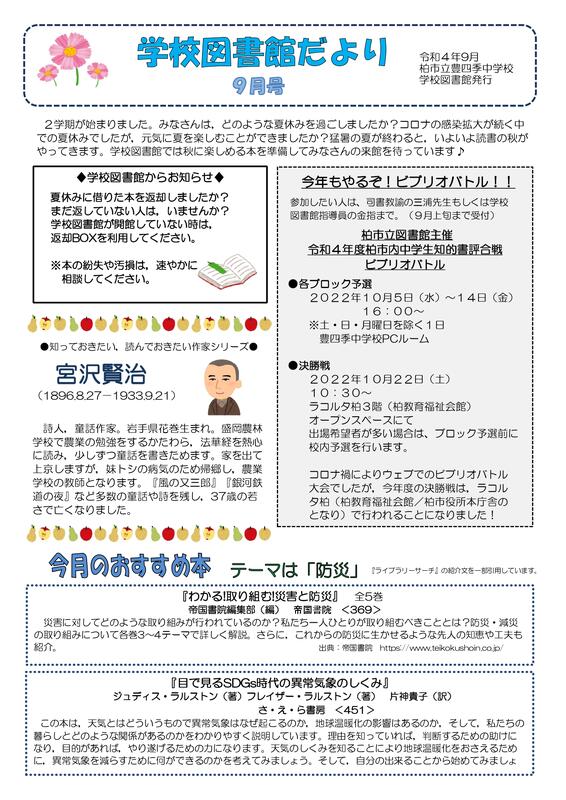 令和4年度図書館だより9月号