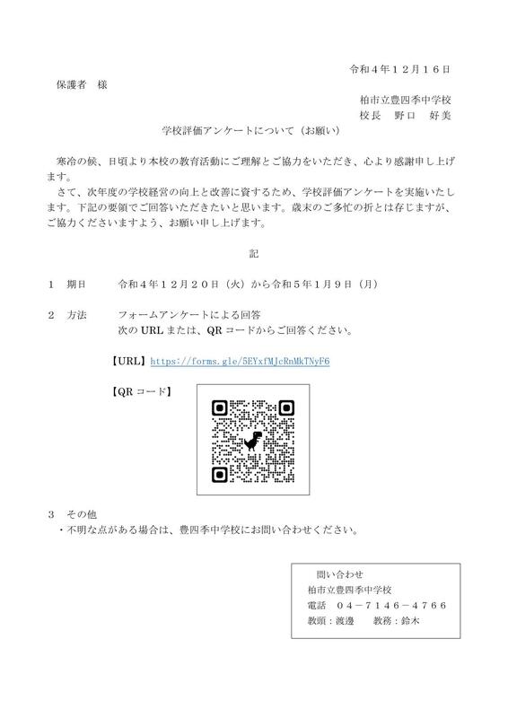 学校評価アンケートについて(お願い)