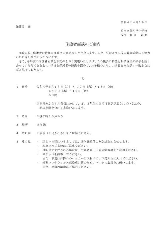 保護者面談のご案内