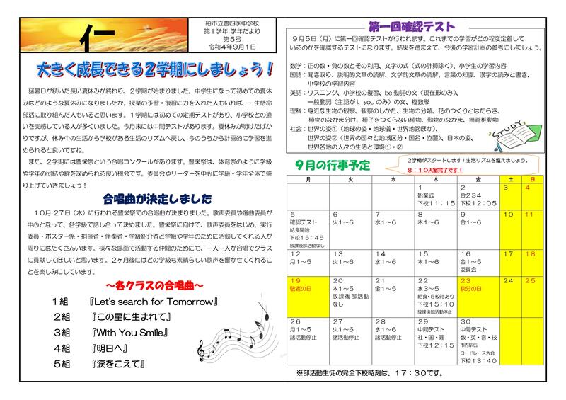 令和4年度1学年だより9月号