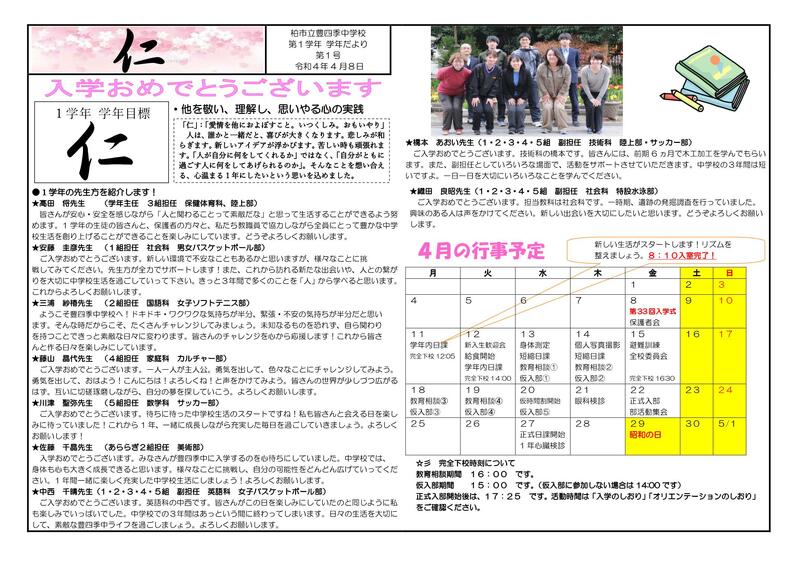 令和4年度1学年だより4月号