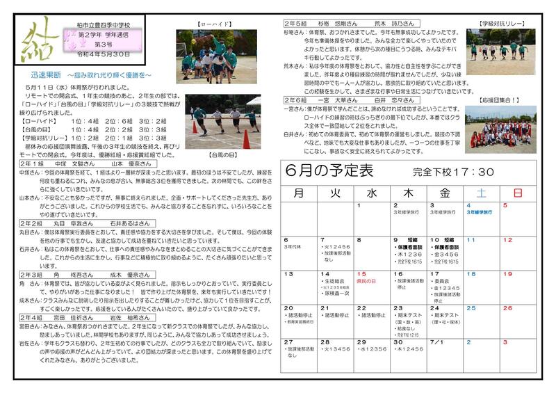令和4年度2学年だより6月号