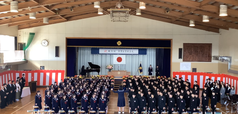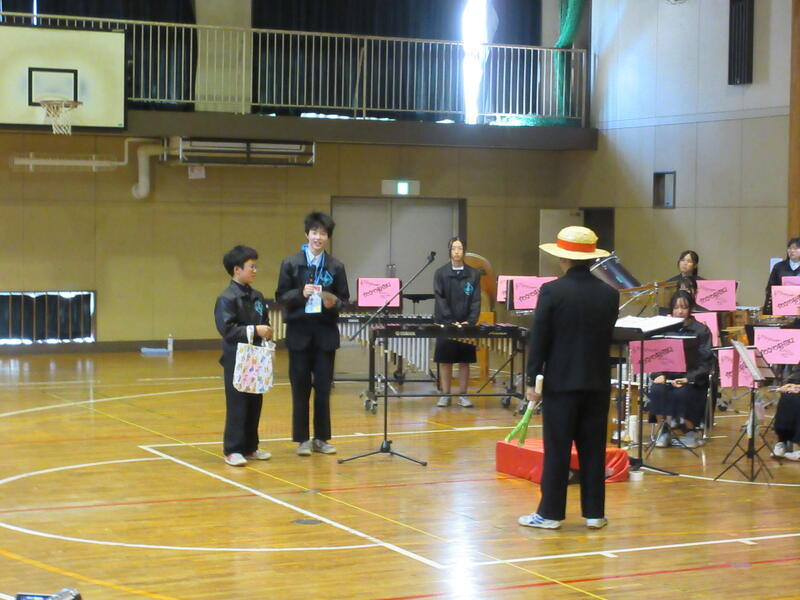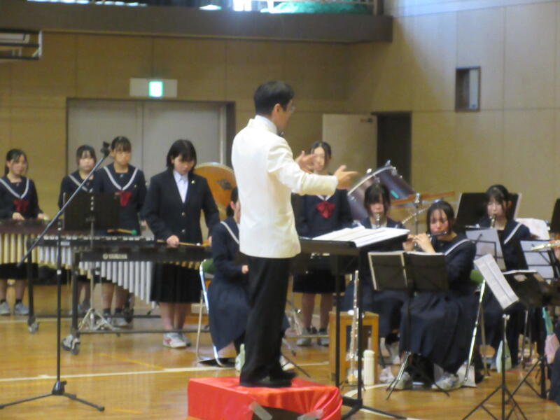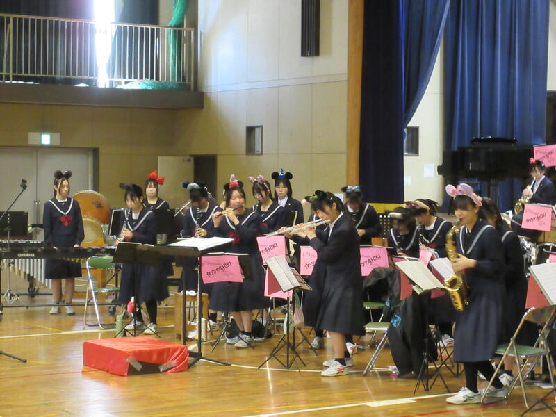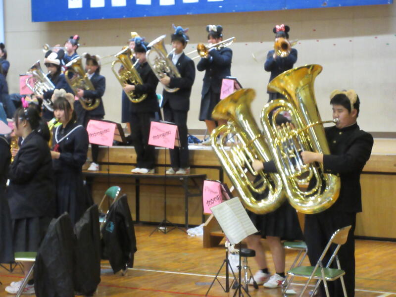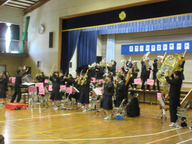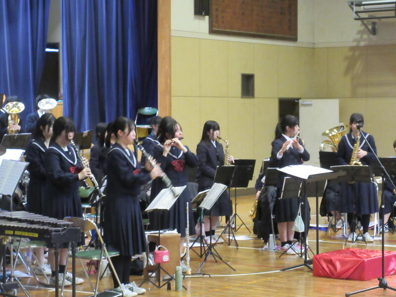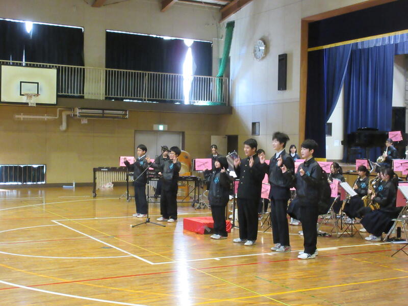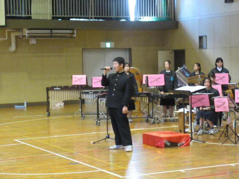 吹奏楽部の演奏、生徒会本部の皆さんによる活動説明、そして2・3年生による校歌合唱。