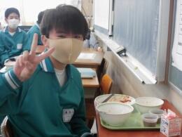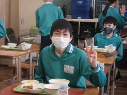 3年生は、給食が今日で最後でした。毎回メニューが楽しみで、みんなで食べるとおいしさが増します。今日は3年生のリクエストメニューです。おいしい笑顔がいっぱいでした!今日まで、栄養たっぷりでおいしい給食を提供してくださった多くの皆様に、感謝の気持ちで一杯です。ありがとうございました。