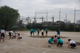 ●1年生は、体育祭の学年競技の練習をクラスごとに行いました。みんな一生懸命に取り組んでいました。