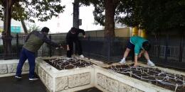雨が降る中、美術部は正門の前の花壇にフラワープロジェクトのための苗を植える作業を行いました。デザインを考えて約200株の苗を、色分けしながら植えました。とても大変でしたが、花が咲くのが待ち遠しいです。