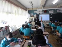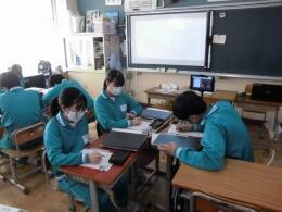 3年生の数学の授業では、課題をグループごとに取り組む時間がありました。自分の考え方を出し合い相談しながら、問題の解き方を見つけていました。リモートで参加している生徒も、活発に意見交換をしていました。班ごとに発表して、考え方を深めていました。