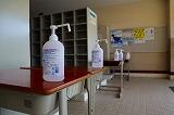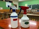 寄付していただいた消毒用アルコール 昇降口での手指の消毒 教室の机・椅子の消毒