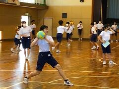 新型コロナの影響で9月12日(土)に予定した体育祭が中止になりました。生徒から「体育祭の代替として何かしたい」という意見が出ました。そこで3年生は体育委員会が中心となり、学年レク大会を企画しました。昼休みに2クラスが体育館に集まり、9月8日(火)から9月18日(金)までの9日間、男女に分かれ1日1試合10分間でドッヂボールのリーグ戦をします。生徒は元気いっぱいにボールを投げ、大いに盛り上がりました。結果は教室前の廊下に張り出され、その内容を見て一喜一憂。クラスの絆を深めています。