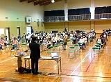 10月1日(木)午後2時から本校体育館で、3年生の保護者を対象に進路保護者会を行いました。はじめに校長から面接練習の状況など校内での進路指導の取組みを説明しました。続いて進路指導主任より今年度の入試について説明しました。今年度より千葉県公立高等学校入学者選抜の方法が変更されて、昨年度までの前期・後期がなくなり1回の選抜になったことや、私立高校の入試など細かいところまでスライドを使って説明しました。11月には3年生の生徒と保護者を対象に三者面談を行い、志望校を決めていきます。