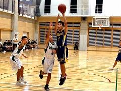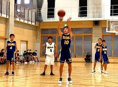 4日(日)準決勝、柏中学校の体育館で逆井中学校と対戦しました。第1ピリオド終了時には1点差でしたが、その後相手のゴールが次々決まり、前半終了時に10点以上の差をつけられました。第3ピリオドで小野誠士郎さんのスリーポイントシュートが決まったことなどをきっかけに、流れをつかみ一気に逆転、その後一進一退の攻防が続き56対56で後半も終了。延長戦に突入しました。最後は59対65で惜しくも負けました。
