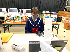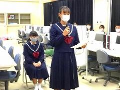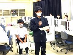 本校の代表生徒2名 リモートで市内の中学校と繋げました