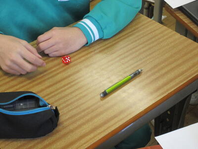 そこでは、サイコロ等を何度も転がしながら、目の出る確率を協力して記録している生徒の皆さんの姿が。